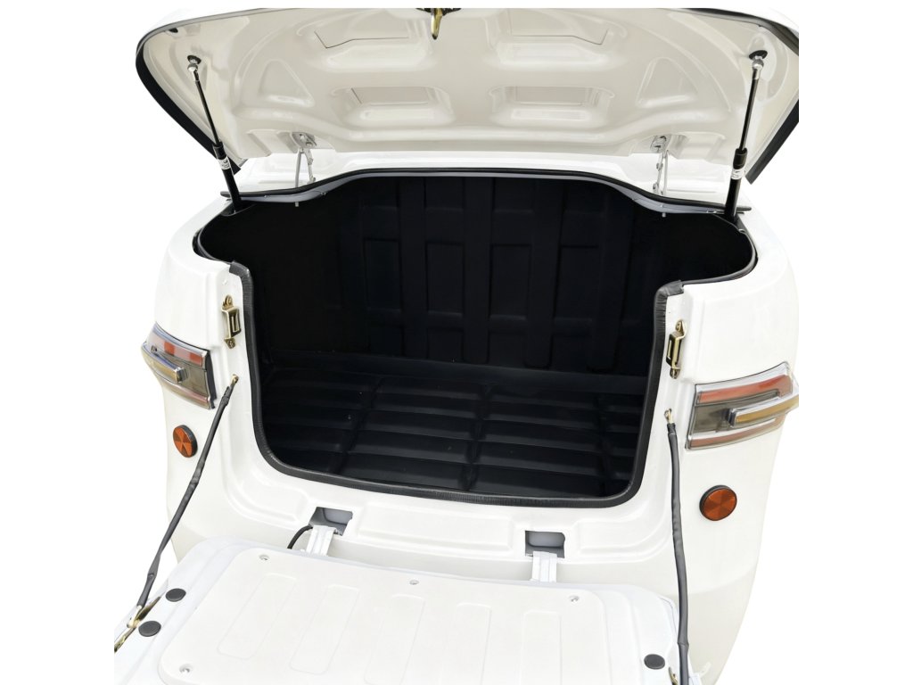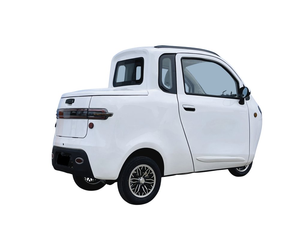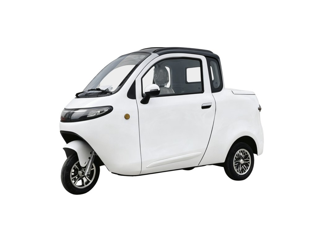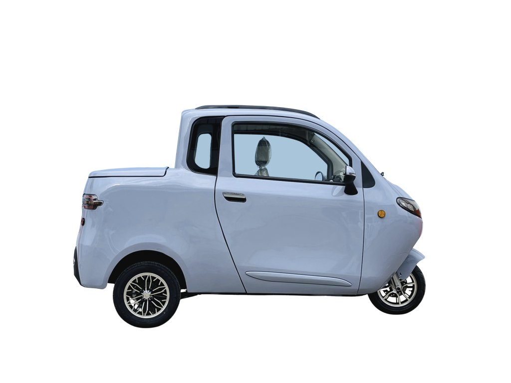 Az e-Pickup 25 egy modern elektromos tricikli, amely ötvözi a városi járművek mozgékonyságát, a zárt kabin kényelmét és a rakomány szállítására alkalmas praktikus hátsó csomagtartót. Kialakításának és 25 km/h maximális sebességének köszönhetően nem igényel jogosítványt, így valóban mindenki számára elérhető.